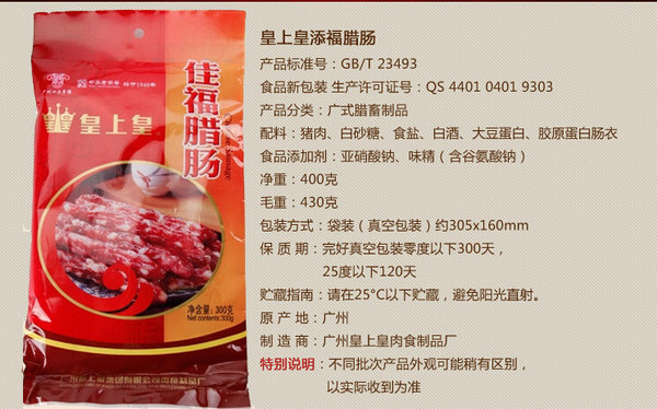 内容物:皇上皇佳福腊肠500克