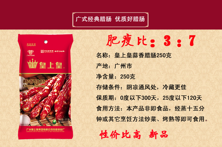 广州皇上皇250克蒜香腊肠 经典广式腊味 广东特产 广州手信 广州直发
