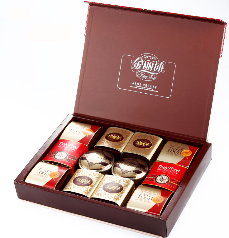 说 明:内装100克蛋黄白莲蓉月饼2个,80克燕麦玉米蓉月饼3个, 80克情侣玫瑰蓉月饼3个,50克奶油绿豆蓉月饼2个,50克玉米马蹄爽月饼2个,配套装刀签及专用豪华手挽袋。