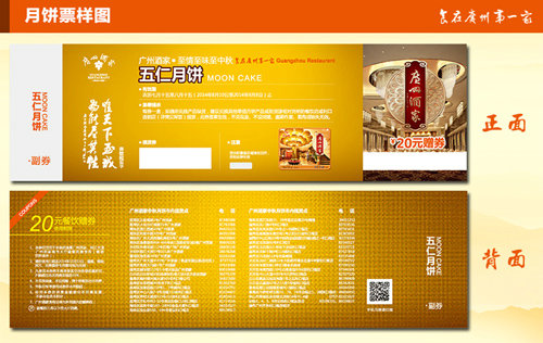 出品商:广州酒家月饼具有色泽金黄、油润软滑、甘甜不腻、皮薄馅优、花纹玲珑清晰、角度四正分明、饼身膨胀呈腰鼓型、饼底杏皮 色幼砂眼等特点,深得消费者喜爱。产销量一直稳居广东省第一位,居全国前三甲,2012年成为国内广式月饼产销量最大的生产企业。