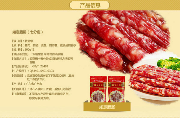 广州皇上皇500克如意腊肠 经典广式腊味 广东特产 广州手信