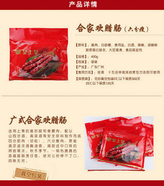 广州皇上皇400克合家欢腊肠 经典广式腊味 广东特产