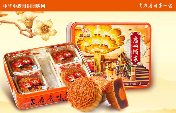 说 明:内装广州伍仁月饼1个*187.5g、蛋黄纯白莲蓉月饼1个*187.5g、蛋黄纯红莲蓉月饼1个*187.5g、蛋黄豆沙月饼各1个*187.5g;彩色豪华铁盒包装;每个月饼独立包装,烫金托盘;配套装刀签及专用豪华手挽袋。