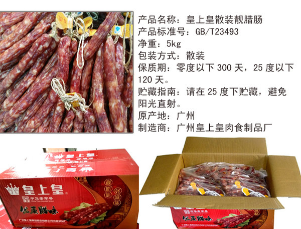 亲们,正宗皇上皇散装腊肠整箱装,年货必备,赶紧备货哦!保证原厂原封箱发货。