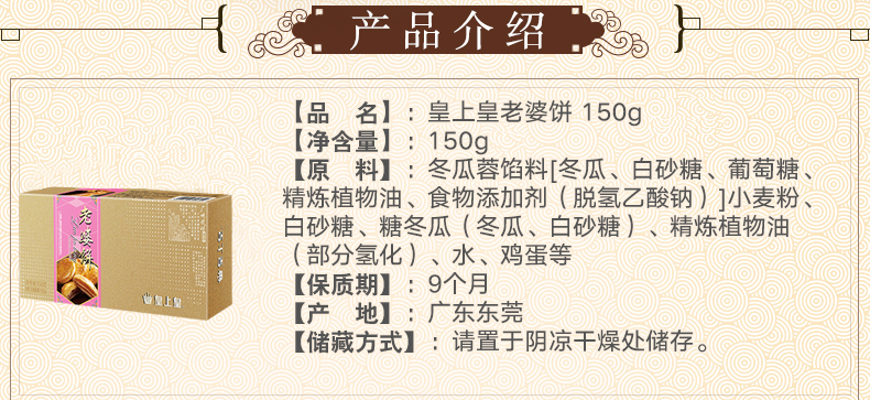 【产品配料】:面粉、白砂糖、鸡蛋,杏仁,瓜仁等