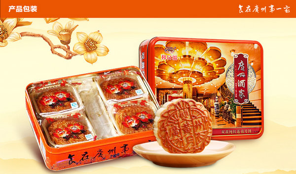 出品商:广州酒家月饼是国内广式月饼产销量最大的生产企业。产销量一直稳居广东省第一位,是广式月饼的产销龙头企业,生产的广州酒家月饼具有色泽金黄、油润软滑、甘甜不腻、皮薄馅优、花纹玲珑清晰、角度四正分明、饼身膨胀呈腰鼓型、饼底杏皮 色幼砂眼等特点,深得消费者喜爱。“月是故乡明,饼是广州好”已成为消费者流传最为经典的一句话。