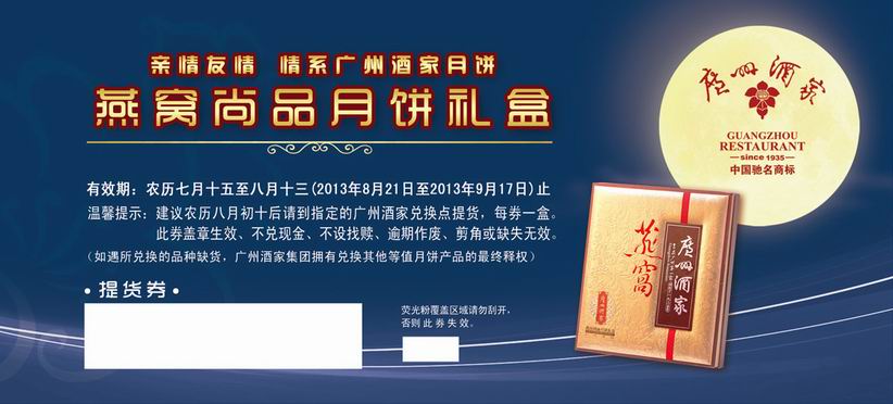 广州酒家-燕窝尚品月饼月饼券(提货券)