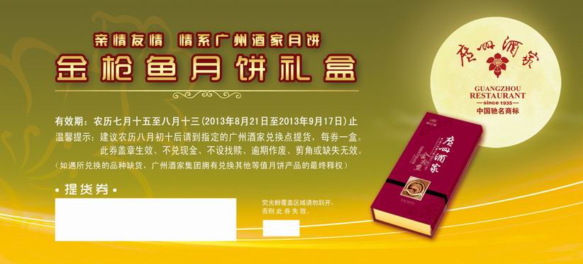 广州酒家吞拿鱼月饼提货券