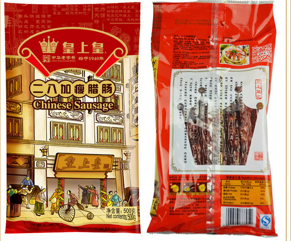 出品商:广州皇上皇集团有限公司是广州岭南国际企业集团有限公司旗下的全资国有企业,是一家集食品加工、冷藏储存、肉品贸易、屠宰加工及鲜肉销售的大型国有企业集团。皇上皇具有悠久的历久,是中国腊味、肉制品行业龙头企业,国家腊味标准主要定制单位,引领着中国腊味、肉制品行业发展新方向。皇上皇,中华老字号,始于1940年,素有腊味之王的美誉,其总店位于上下九步行街。上下九为广州必去地方,皇上皇腊肠也是必带手信之一,皇上皇腊味成为深受广大消费者的喜爱的送礼佳品,是誉满全国的广东特产,有华人的地方就有皇上皇,逢年过节必可以看到皇上皇总店排队购买的情形。